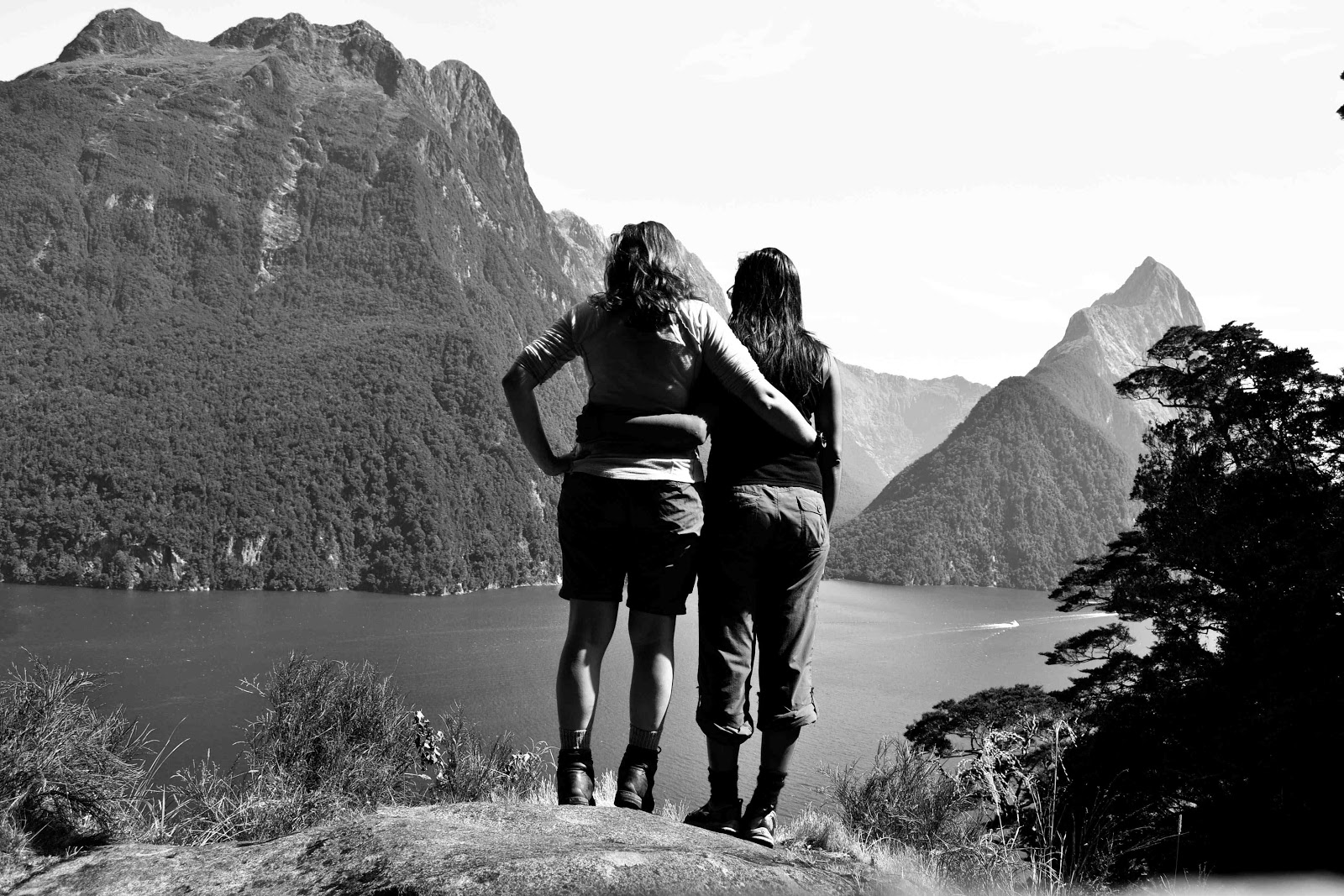 A couple weeks ago, Lyn, Kat, Pi'ilani and I went on a last-minute adventure on one of the quintessential locals' tracks in Milford Sound (or perhaps the only one) to the top of Bowen Falls, a famous cascade not far from the little village and the cruise terminal. With lots of helpful advice from Anja, we set out on a good scramble, complete with ropes, ladders, swimming holes and a water pipeline: