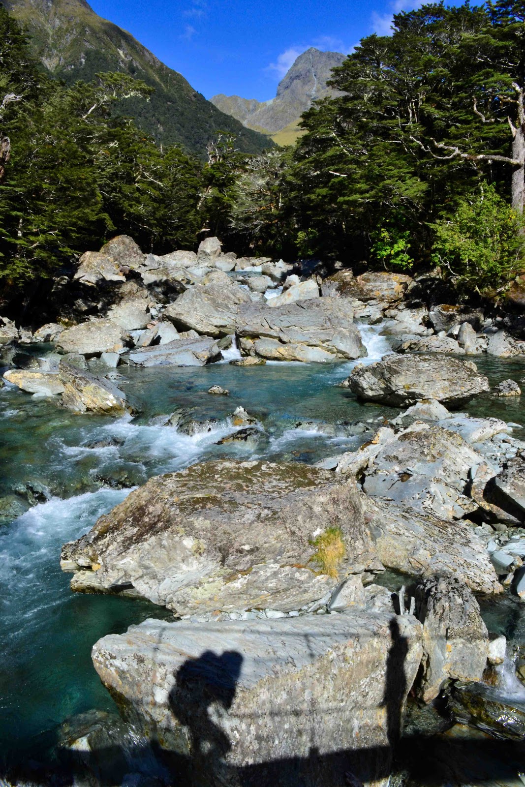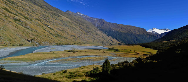 | View of the Routeburn Flats from a slip uphill. New Zealand is divine. |